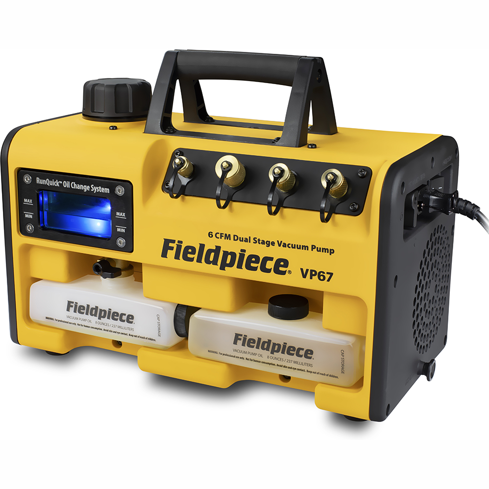 Con le nuove pompe per vuoto dotata del sistema di cambio olio RunQuick™, Fieldpiece offre una soluzione all’avanguardia per una corretta evacuazione dei sistemi.