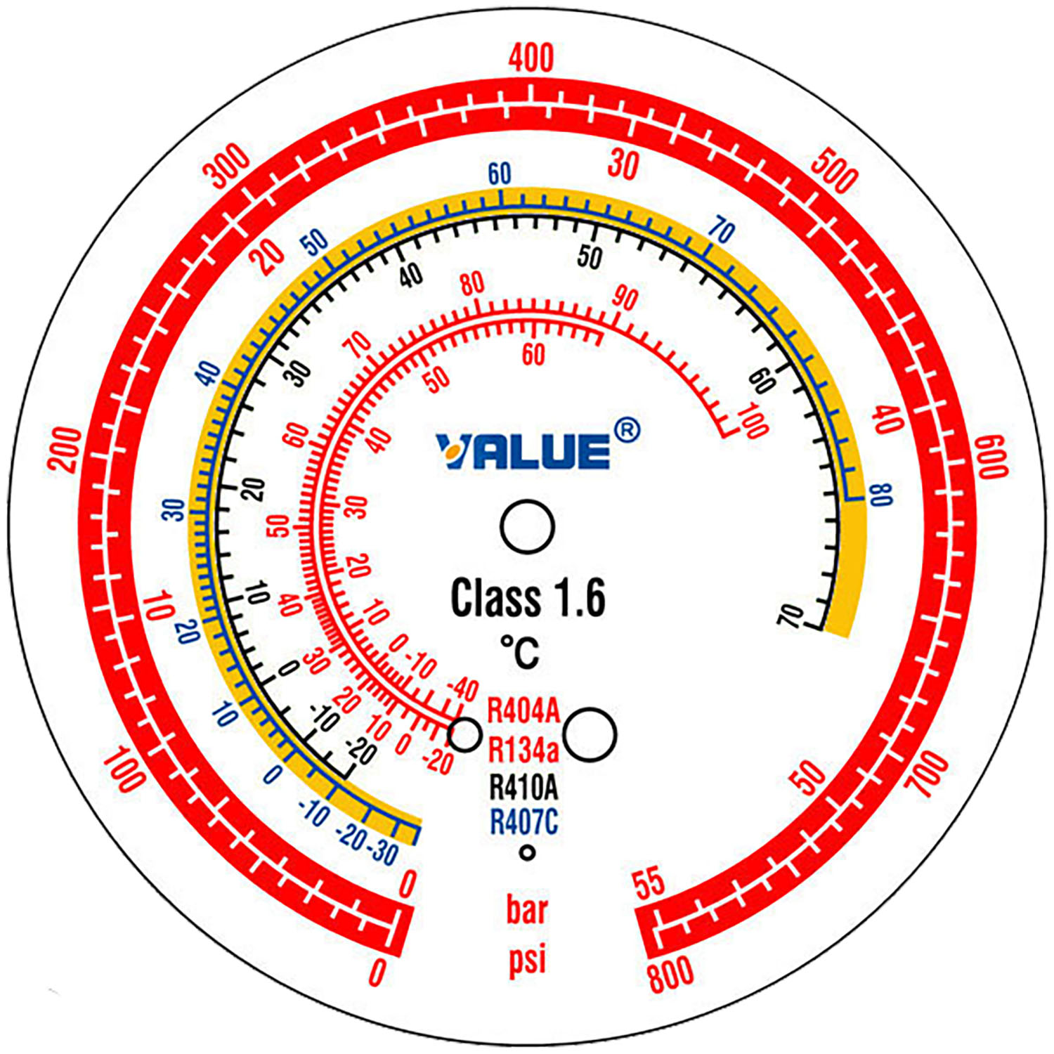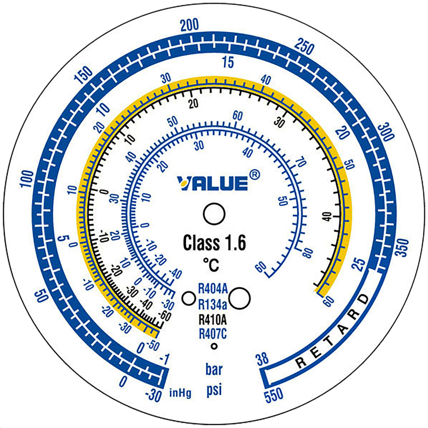 VALUE Gruppo manometrico 4 vie per Refrigerazione e Condizionamento VMG-4-R410-03 – manometri dia. 80 mm. – R&AC refrigerazione e climatizzazione (R134a, R404A, R410A, R407C) in valigetta – dichiarazione di conformità con n° seriale dello strumento fornita in dotazione